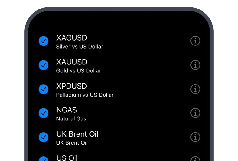 Trade CFDs on Gold, Silver, Crude Oil, and other essential metals and energies.