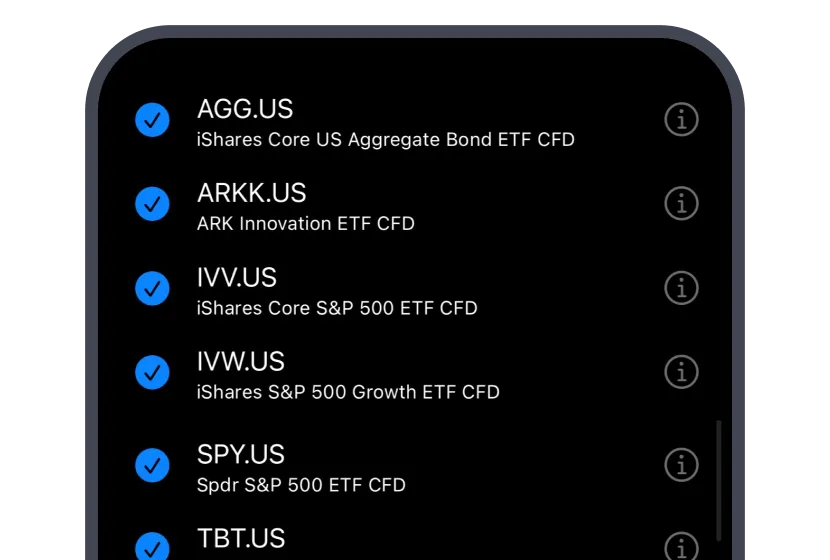 Trade ETF CFDs to gain access to a broad portfolio and track indices, sectors, or global markets without picking individual stocks.