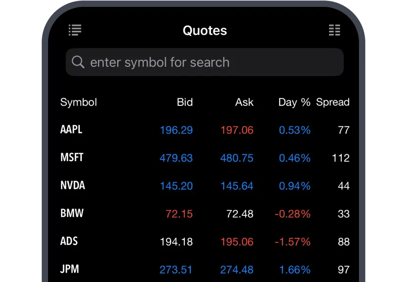 Trade blue chip stocks and mega cap names across the US, Europe, and UAE on one platform.